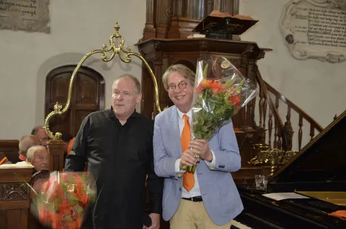 Bloemendaal - Zaterdag 26 april verzorgde organist Jaap Stork samen met trompettist Boni Rietveld het 37e Oranjeconcert in de Dorpskerk in Bloemendaal. Speciale gasten waren Erik van Muiswinkel en Boudewijn de Groot.