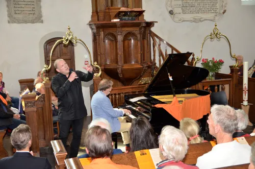 Rond 12.30 uur begon in een volle Dorpskerk dit traditionele Oranjeconcert. De kerk raakte eerder al snel volledig bezet met belangstellenden. Het oranje concert wordt georganiseerd door het oranje comité Bloemendaal dorp en ondersteund door de vrienden van de kerk.