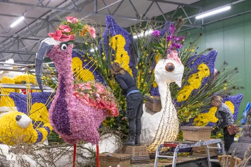 Vele vrijwilligers en bestuursleden zetten zich tijdens de opbouwdagen of 'steekdagen' in om de prachtig ontworpen praalwagens, auto's en overige voertuigen die deelnemen aan de jaarlijkse corso in de bloemetjes te zetten. Over dit schitterende evenement valt zoveel te vertellen, dat ik u zeker aanbeveel de website van de Corso te bezoeken. (Link verderop in dit artikel) Op die website vindt.u alle informatie over de deelnemers, de geschiedenis enuiteraard de route die de Corso zaterdag 12 april aflegt. Hier onder een foto- en filmimpressie van dag twee van de zeer druk bezochte steekdagen. Drukker bezocht dan voorgaande jaren, nu in Noordwijkerhout van een gunstig gelegen opbouwlocatie gebruik kon worden gemaakt.