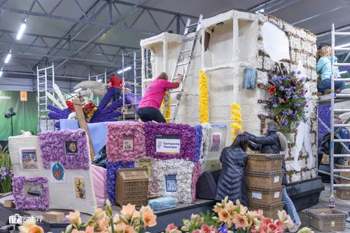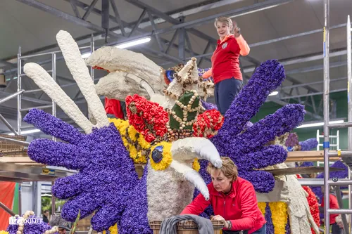 Noordwijkerhout - Het blijft jaarlijks een creatieve- en verbindende belevenis, het steken van de vele kleurrijke hyacinten op de Corso-praalwagens, die zaterdag 12 april vanuit de bollenstreek de lange route van Noordwijk naar Haarlem afleggen.