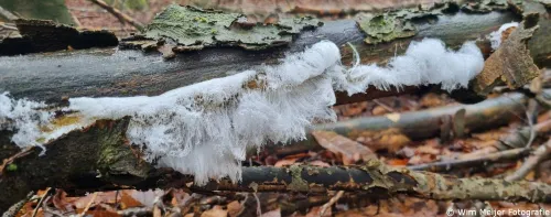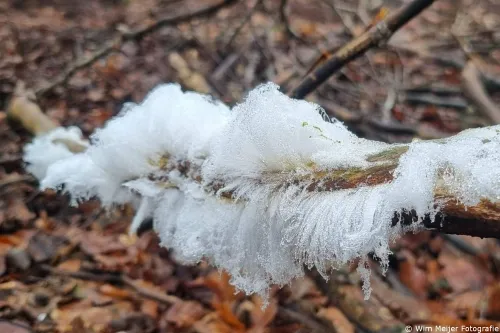 verschijnsel: ijshaar, ofwel ‘de baard van Koning Winter’.