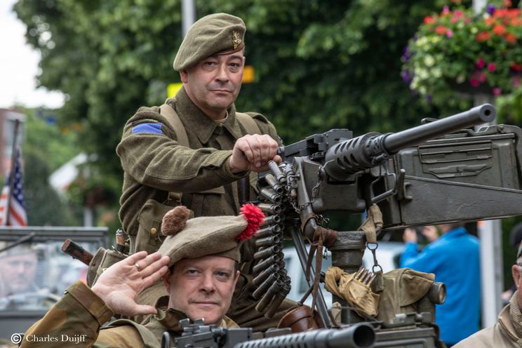 De start om 9.00 uur: Vertrek commandotroepen. Opstellen in de regen. Al vroeg in de morgen de voorbereiding voor activiteiten en bezienswaardigheden voor jong en oud op de Donkerelaan nabij het DorpshuisSommigen kwamen vast een kijkje nemen Er werd gedisciplineerd geoefendNatuurlijk vele authentieke voertuigen te bewonderen. Zie ook artikel Veteranendag Bloemendaal #3 dat binnenkort wordt gepubliceerd. Hieronder de commandotroepen op weg naar de Eerebegraafplaats Om 13.00 uur vond een plechtigheid plaats op de Eerebegraafplaats Bloemendaal aan de Zeeweg. Hieronder brengt familie van Hannie Schaft een bezoek aan haar graf en zij leggen rode rozen op haar rustplaats. The Seaforth Highlanders begeleidden de commandotroepen en speelden tijdens de plechtigheid op de begraafplaatsOok de beheerder van de Eerebegraafplaats George ten Hoope, die binnenkort met pensioen gaat, ging de troepen voor richting de begraafplaatsHij ontving tijdens de plechtigheid een bijzondere munt die nog ontbrak aan zijn inmiddels uitgebreide collectieDe Highlanders speelden een plechtige melodie die ik herkende als 'Blijf bij mij heer'Waarnemend burgemeester Nico Heijink vertegenwoordigde de gemeente Bloemendaal op de begraafplaats. Namens de commandovereniging Noord-Holland werd een prachtige krans gelegd Na de plechtigheid op de begraafplaats vertrok de stoet naar het gemeentehuis van Bloemendaal, waar burgemeester Elbert Roest hen een warm welkom had voorbereidMedeorganisator van deze dag Robert Verrijk sprak voor de aanwezigen Na bezoek aan het gemeentehuis reed ede volledige stoet via het centrum van Bloemendaal naar de Donkerelaan, waar bij het bij het Dorpshuis tijd was voor een drankje en gezelligheid