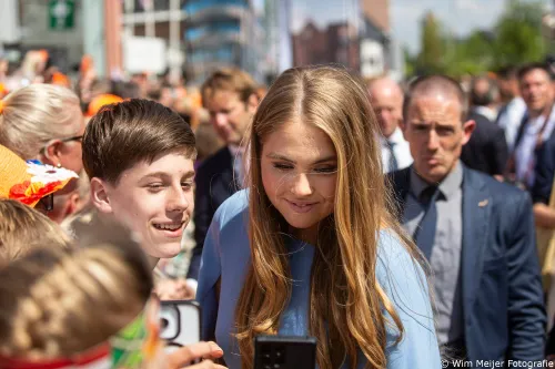 Maxima en Amalia als door de duizenden aanwezige feestvierders.