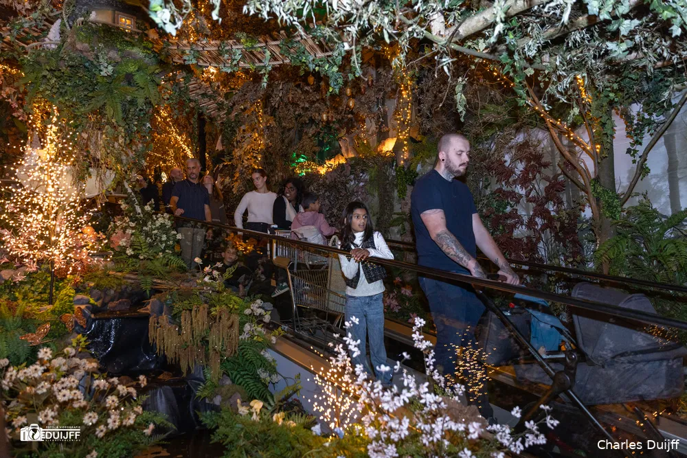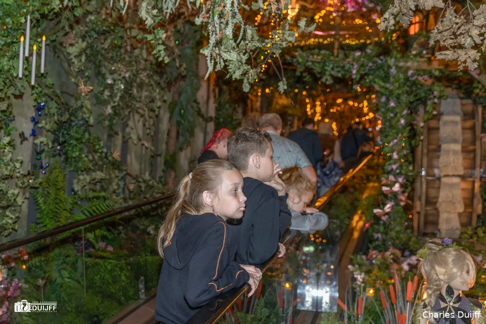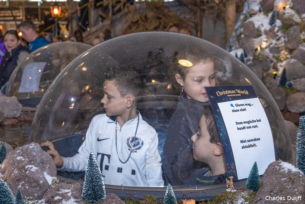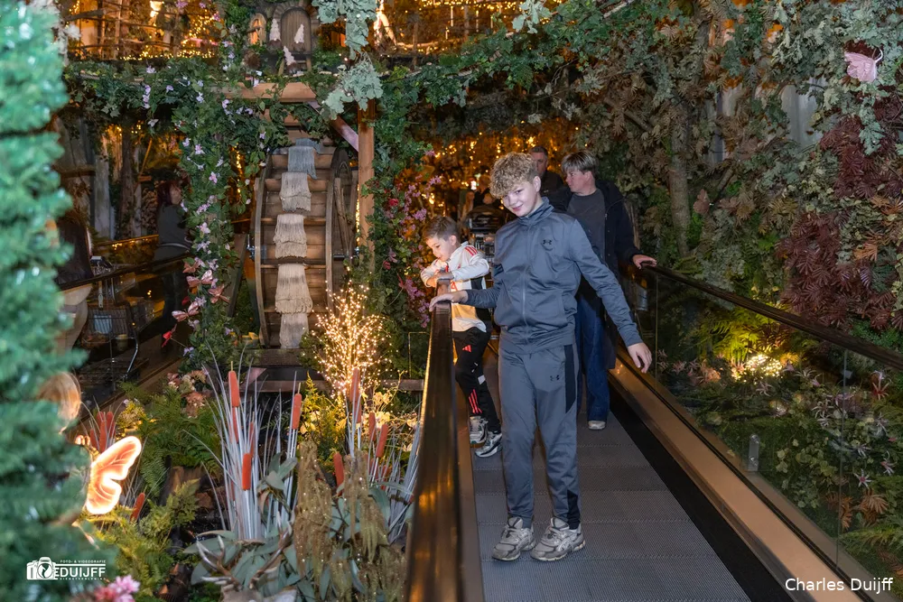 De winkelwagens kunnen mee met de tocht van 1,5 kilometer door een gigantisch Wonderland: Het Woud van Verwondering waarmee het entree van Christmasworld in Duiven haar gasten verwelkomt. Maar liefst 18 tot 20.000 vierkante meter is omgetoverd in Kerst- en Sprookjessfeer. Kinderen stralen bij alles wat ze zien. Jong en Oud komen ogen te kort! Pappa's en Mamma's, Opa's en Oma's genieten mee! Even weg van een wereld waar ernstige humanitaire crises ons allen grote zorgen baren. Je kunt je dat nauwelijks voorstellen wanneer je dit Woud van Verwondering binnenstapt.
