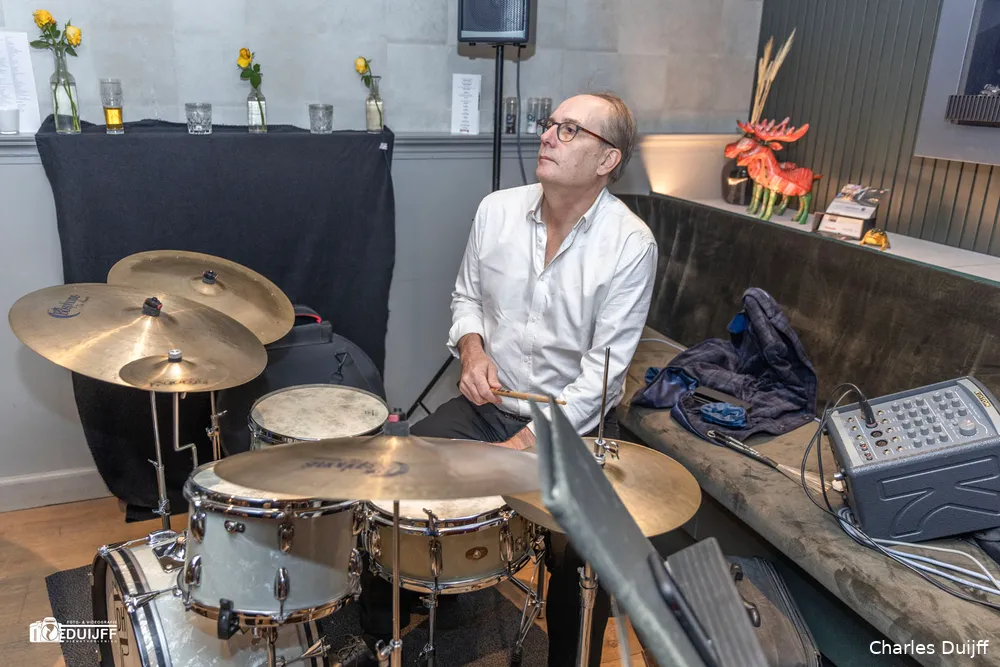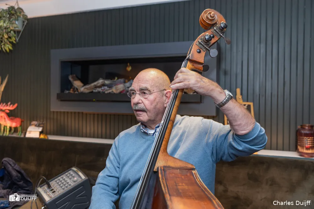 Een hechte ritme-basis is in elke band voorwaarde voor een swingend- en strak ritme, immers daar leunen alle overige bandleden op. Dolf Helge koestert Jazz-muziek en die passie ervaar je tijdens zijn functionele spel.