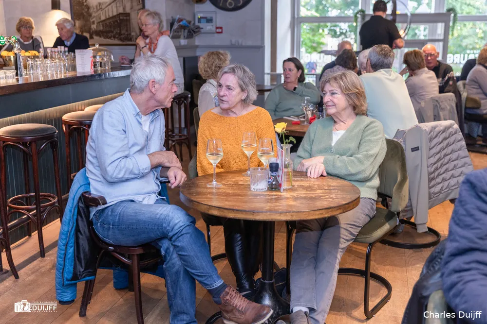 Het werd al vroeg gezellig druk en dat komt niet alleen door de belangstelling voor swingende Jazz-muziek, want ook de sfeervolle entourage van Bar Bistro Nieuw Vreeburg is daar debet aan. De inrichting geeft een intiem gevoel en onder genot van een drankje en hapje vliegt de jazz-middag voorbij met als vooruitzicht de mogelijkheid 's avonds aan te schuiven voor een heerlijk diner.