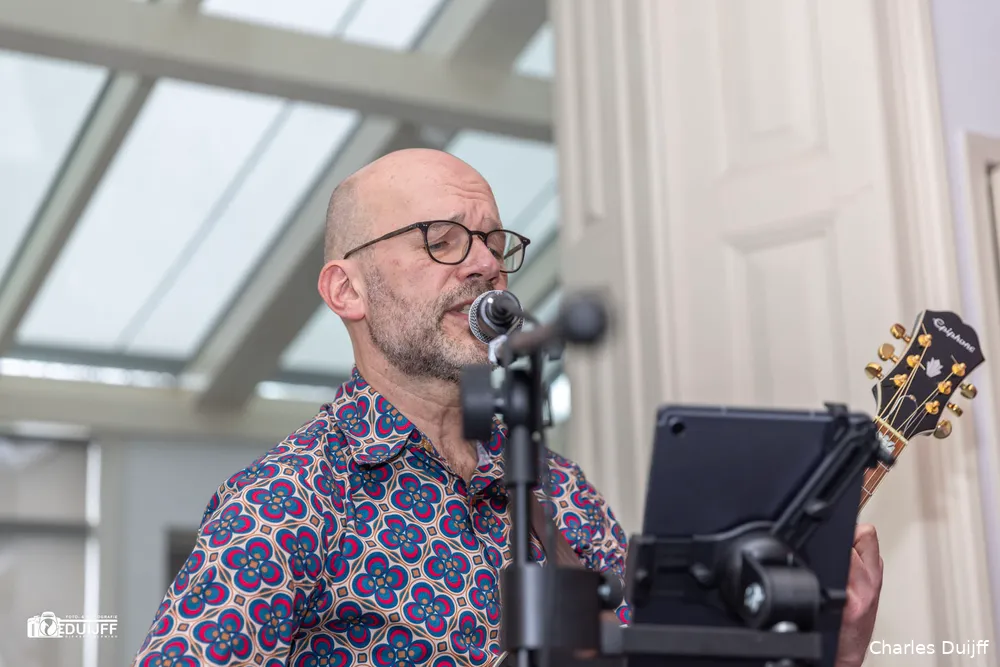 Siemen Spinder zorgde met zijn trio dat Liefhebbers van het Franse Chanson volop aan hun trekken kwamen. 'Het Dorp' van Wim Sonneveld is, dat weet u wellicht, een cover van de Franse zanger Jean Ferrat met de titel 'La Montagne', en dat dateert uit 1964. 'Chansons & ZO' begon met zingen van dat bekende chanson in het Frans en wisselde de Franse taal af met 'de Nederlandse ansichtkaart, waarop een kerk staat en natuurlijk de bekende kar met paard' Al het repertoire werd gespeeld zonder elektronische versterking.