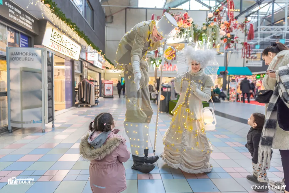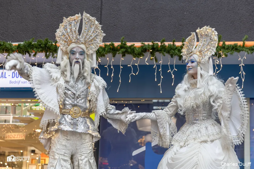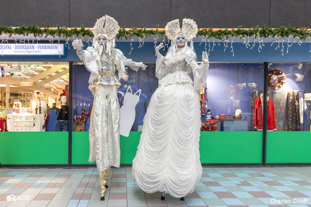 Zo wandelden afgelopen zaterdag indrukwekkende figuranten rond in het winkelcentrum en de kerstman 'trommelde' magische X-mas-liefhebbers bij elkaar. Bij voorbeeld om te komen draaien aan een rad van fortuin. Met een kassabon moet je draaien en je had altijd prijs!