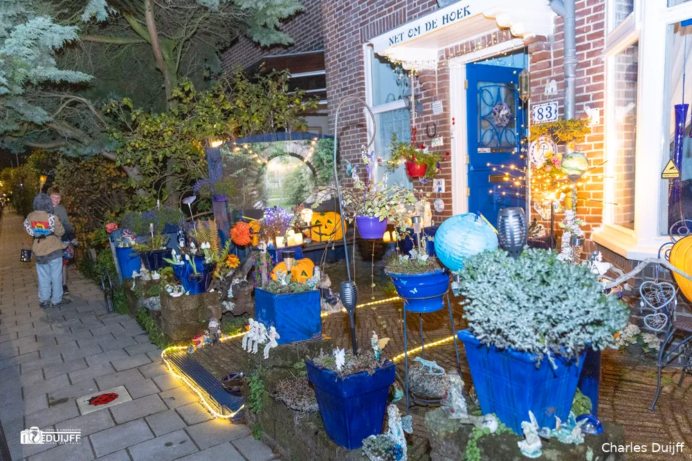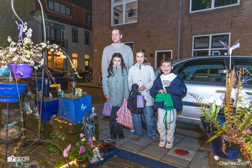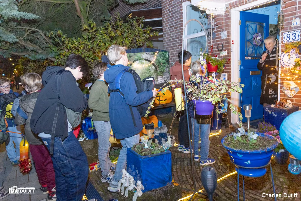 Vanaf de Kleverlaan na de Iepenlaan de eerste straat rechts tref je 'net om de hoek' op de Kinheimweg het 'Blauwe huis', dat inmiddels ook in Haarlem en Heemstede steeds meer bekend is geworden vanwege een heel bijzonder Sint Maartenadres. Dat was te merken, want gezinnen uit de regio brachten hun kids speciaal per auto naar die locatie. Bewoonster Miep Wyckelsma en haar man Emile deden in 2024 al voor 188 kinderen kun deur open en dit jaar liep dat dus op tot 281 kinderen.
