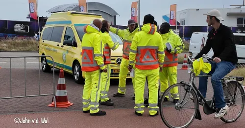 De ambulances mochten sowieso het circuit-terrein op, dat was geen enkel probleem. Het probleem was de logistiek. Zeven ambulances kwamen overal uit Nederland richting het circuit, maar kwamen daar niet tegelijk aan. Kennelijk wringde daar de schoen. Uiteindelijk mochten de voertuigen op elkaar wachten op de parkeerplaats voor het NH-hotel tegenover het circuit, om daarna tegelijk naar binnen te rijden. (zie ook filmpje verderop)