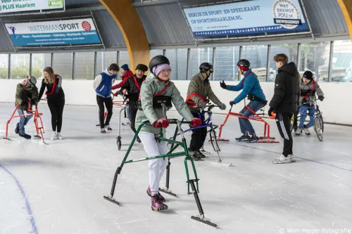 schaatsframes, een uitvinding van stichting Het Gehandicapte Kind.